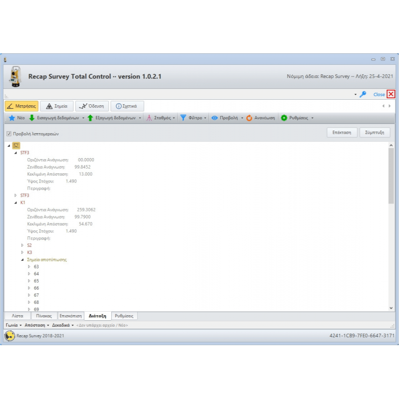 Το Total Control είναι μια εφαρμογή εισαγωγής, διαχείρισης και επίλυση μετρήσεων από όλους τους γεωδαιτικούς σταθμούς της αγοράς.